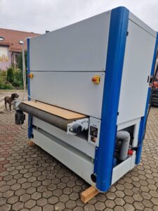 Baujahr 2005 Arbeitsbreite 1350mm Werkstückdicke 3-160mm 1 kombiniertes Schleifaggregat mit automatischer Aggregatverriegelung stufenlos, frequenzgeregelte Schnittgeschwindigkeit 2-18 m/s Stahlkontaktwalze elektr. gesteuerter Gliederdruckbalken, patentiertes CPS 2 System Segmentbreite 25mm für hohen Toleranzausgleich zum Fein- und Lackschleifen im Programm gespeicherter Anpassung des Schleifdrucks Bandabblasvorrichtung Vakuumspannvorrichtung im Maschinenständer integriert automatische Dickenmessung direkt an der Maschine und zusätzliches Funkmessgerät geschützte Schleifschuhablage an der Maschine optische, berührungslose Schleifbandsteuerung pneumatische Schleifbandspannung TouchScreen Bildschirmsteuerung mit 125 frei programmierbaren Speicherplätzen Programmwechsel bei laufender Maschine möglich Sicherheitsabschaltung bei Fehlbedienung Gurtvorschub, stufenlos von 2.5 bis 13m/min Finish-Bürste an der Auslaufseite ausziehbare Werkstückauflage am Einlauf Absaugstutzen: 1x 180mm, 1 x 140mm, 1x100mm